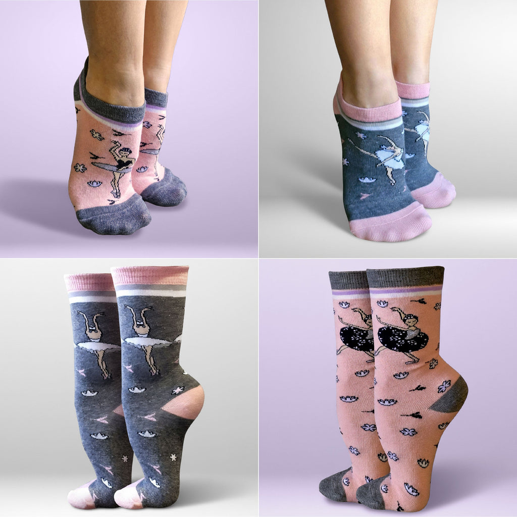 Inspirado no clássico dos clássicos do Ballet, este kit de meias traz um mix de Cano Baixo e Cano Alto.